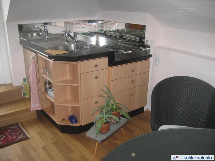 Mit unserer Erfahrung haben wir nicht nur bei der Restaurierung der alten Möbeln (Baujahr 1920!) aus einer aufgelassenen Greißlerei handwerklich unterstützt, sondern auch die Planung wie Raumaufteilung, Vorschläge für die Gestaltung und Materialauswahl übernommen.