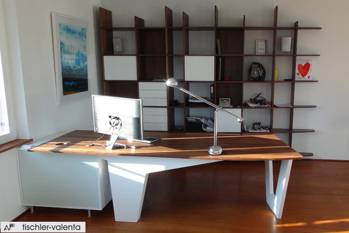 DSP Winterweiss, Regale und Arbeitsplatte Nussmassiv, Container Zebrano