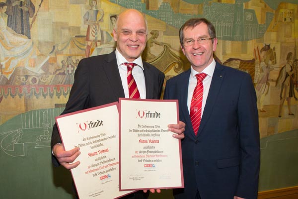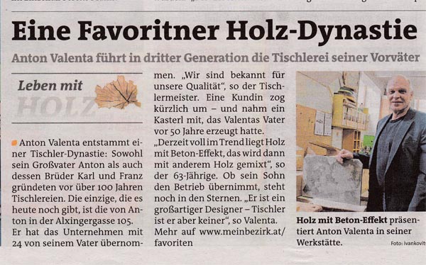 Vor 105 Jahren hat der Großvater den Betrieb gegründet. Sein Enkel hat ihn vor 40 Jahren vom Vater übernommen. Für die Wr. Tischlerinnung stellte sich Innungsmeister Komm.Rat Johann Burgstaller mit Glückwünschen ein.