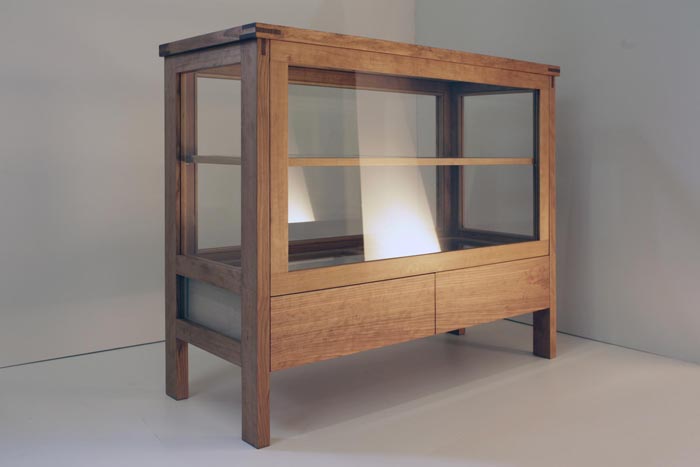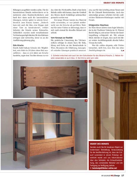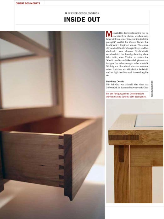 Unser Lehrling Lukas Schwärz hat seine Gesellenprüfung erfolgreich bestanden. Das Gesellenstück ist eine Vitrine in Kirsch.